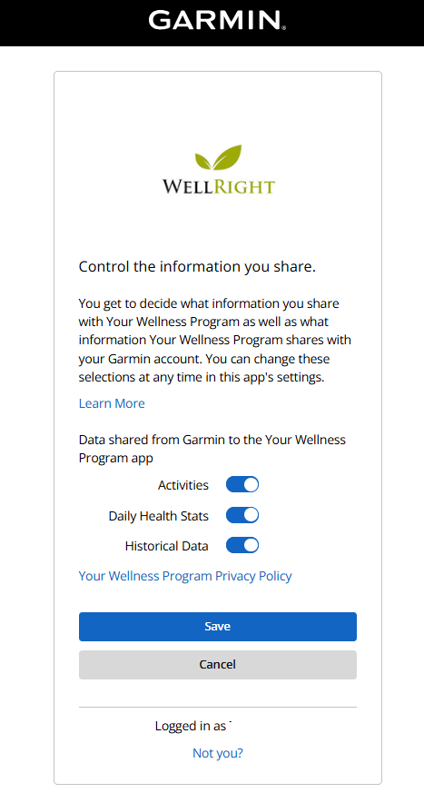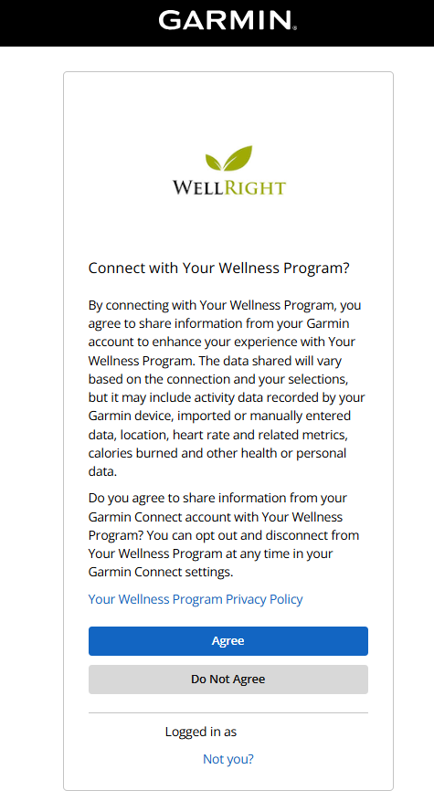 3. You will be prompted to grant WellRight access to the information/data from your Garmin profile and associated devices.